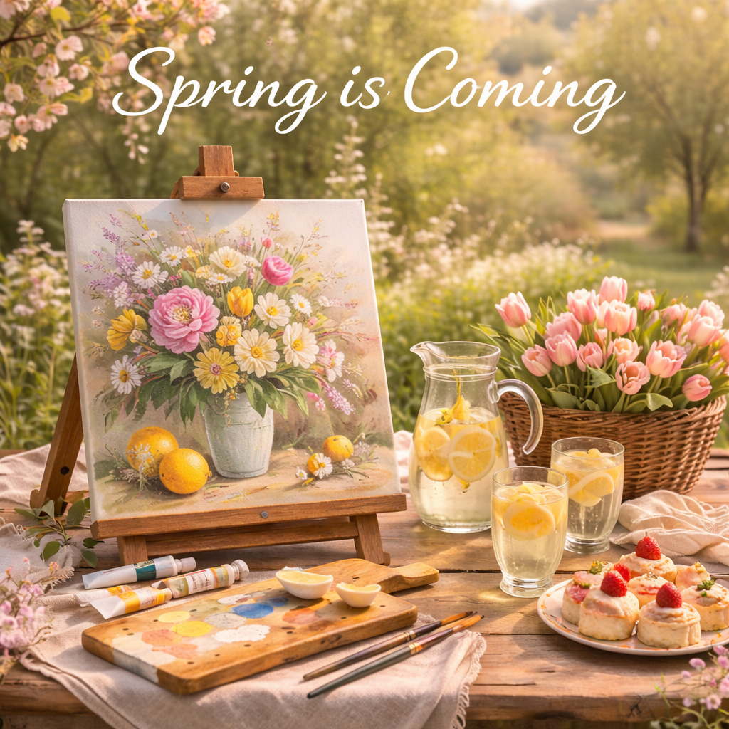 Tijdens deze editie schilderen we een licht en vrolijk lentethema, denk aan een mooie zonsopang, bloemen en frisse tinten die energie geven.